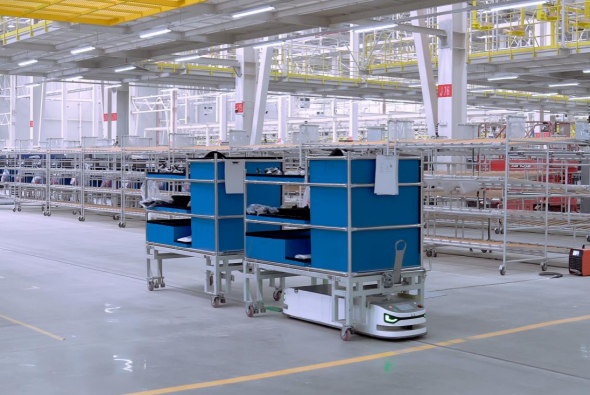 行業首個人形機器人與無人物流車、工業移動機器人協同作業解決方案。