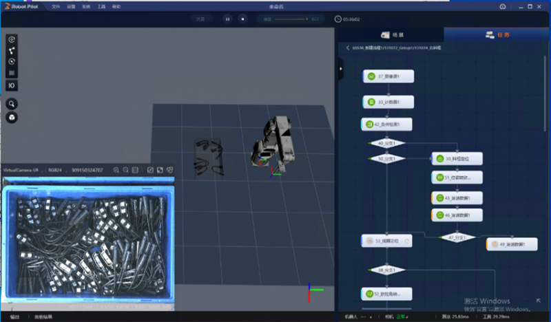 使用相機(jī)拍攝型材中部,RP輸出一組型材抓取點(diǎn)引導(dǎo)機(jī)械臂進(jìn)行抓取 |