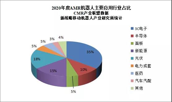 2020年AMR機器人應(yīng)用主要集中在3C電子、半導(dǎo)體、面板、新能源及光伏、電力成套及醫(yī)藥行業(yè)等制造領(lǐng)域,其中3C電子行業(yè)應(yīng)用規(guī)模最大,占比40%。值得注意的是,2020年AMR機器人在傳統(tǒng)的汽車市場也有滲透,但占比不大。主要原因在于新興制造業(yè)對生產(chǎn)線的柔性化要求程度更高,因此AMR在這些領(lǐng)域更受青睞。不過伴隨著AMR技術(shù)的進一步成熟以及制造業(yè)產(chǎn)業(yè)升級的加速,未來AMR機器人將逐漸向更廣闊的市場延伸。